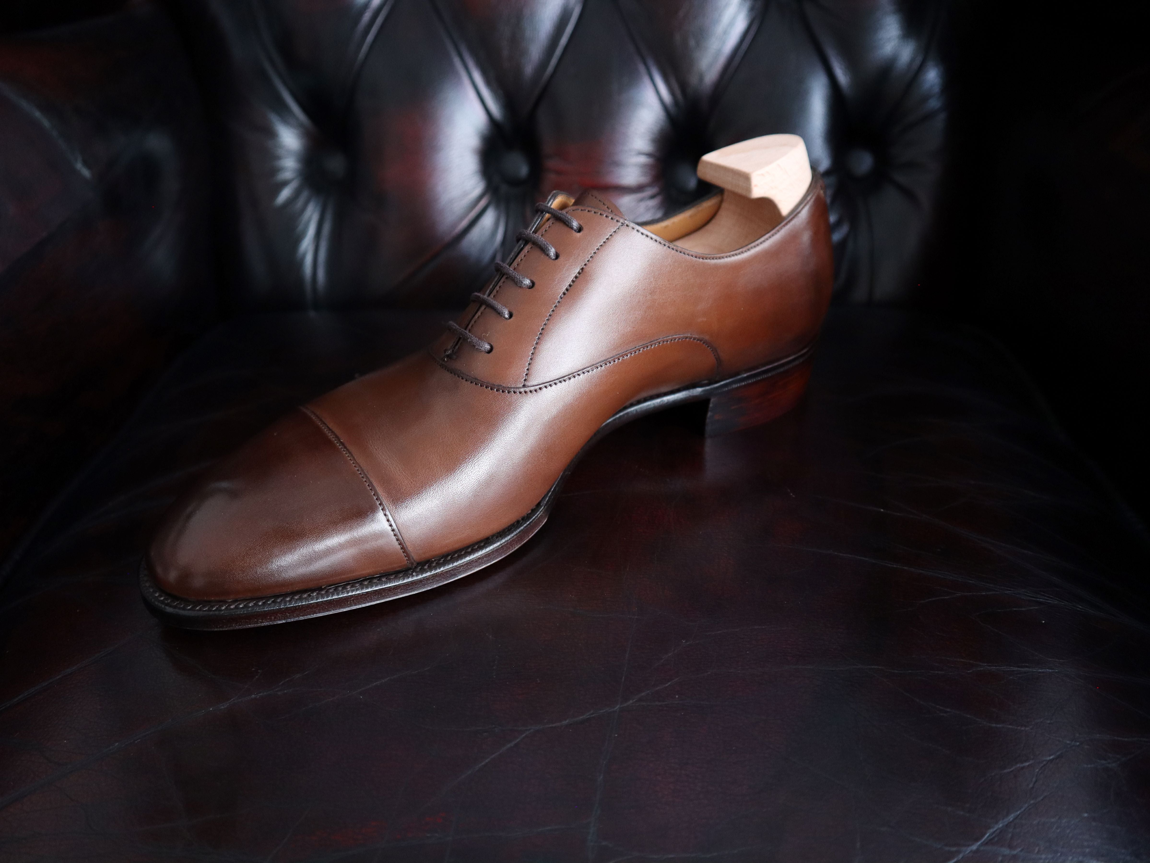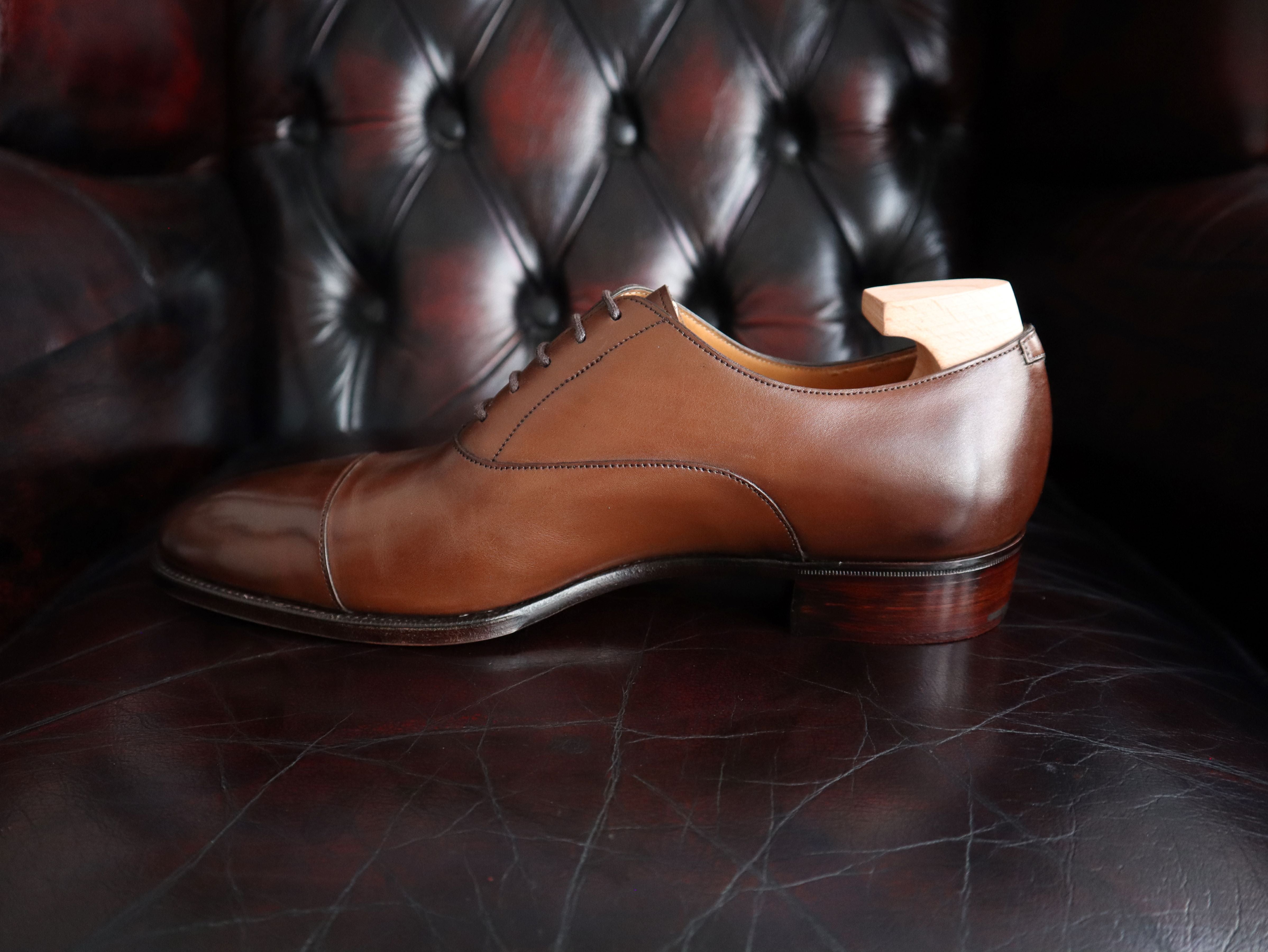 The classic Cap-Toe Oxford shoes, hand crafted from beautiful Vintage Oak on our Smart Round DG70 last.