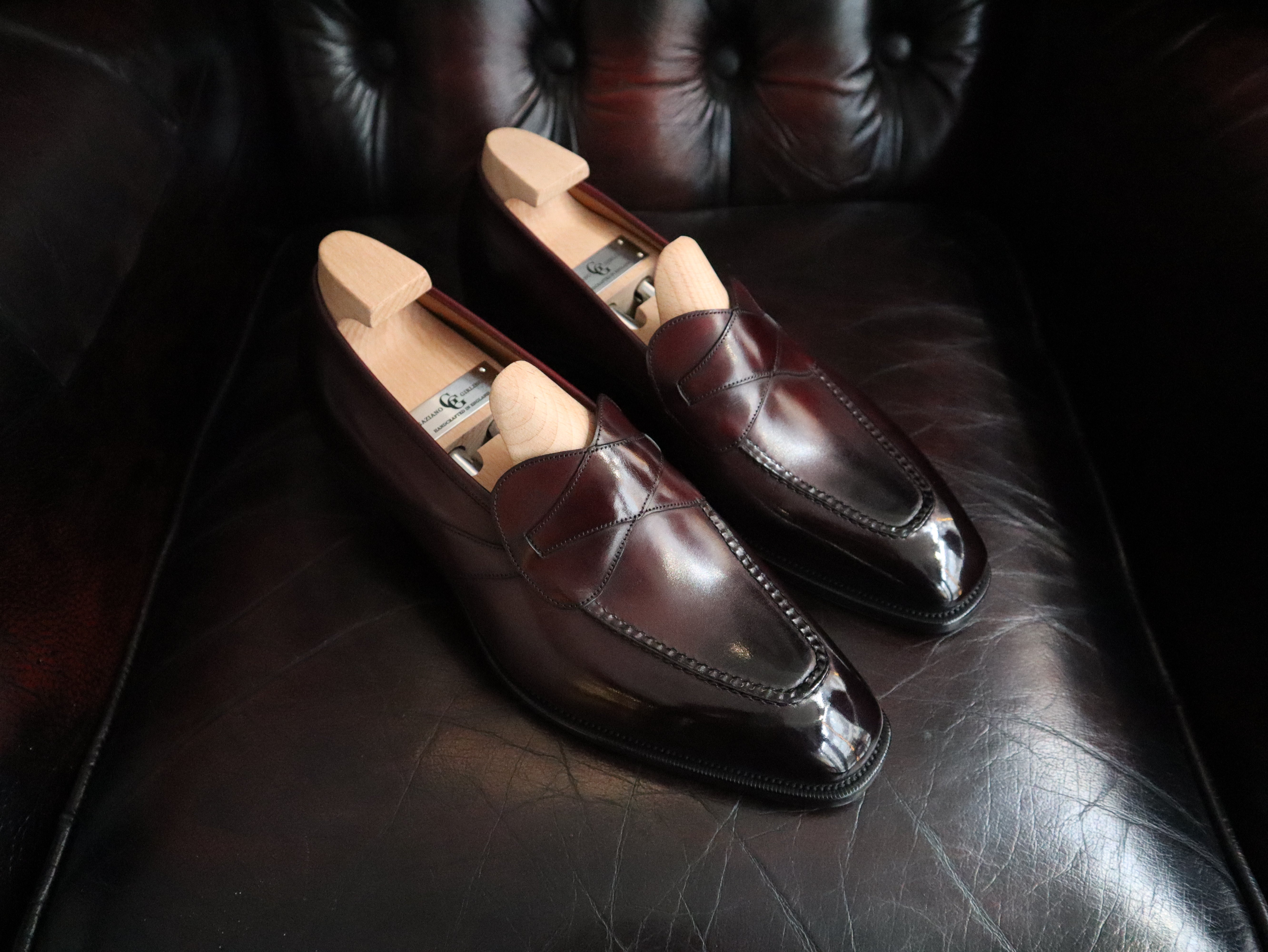 Here it is in Vintage Rioja on the KN14 toe shape with a single leather sole.