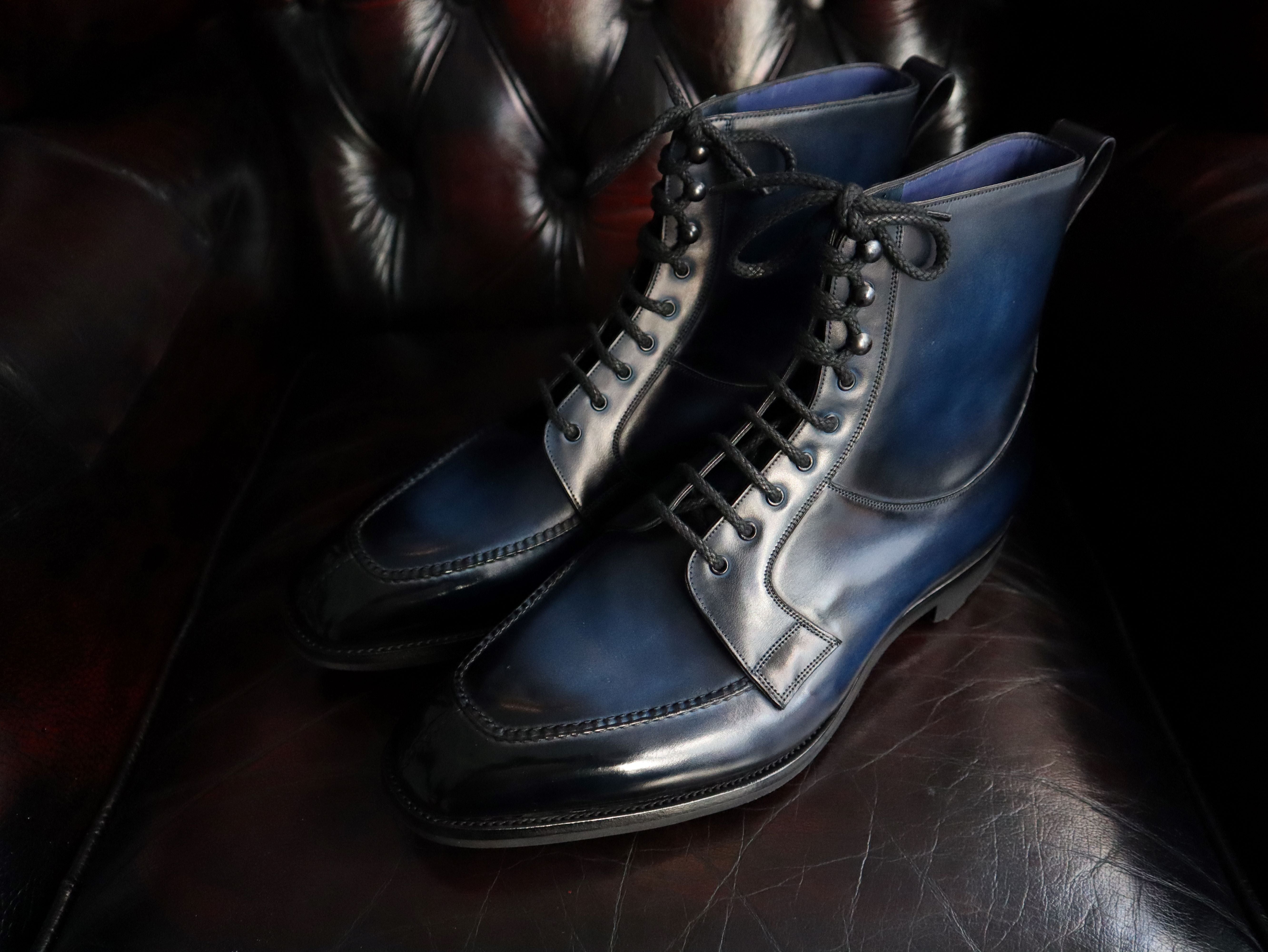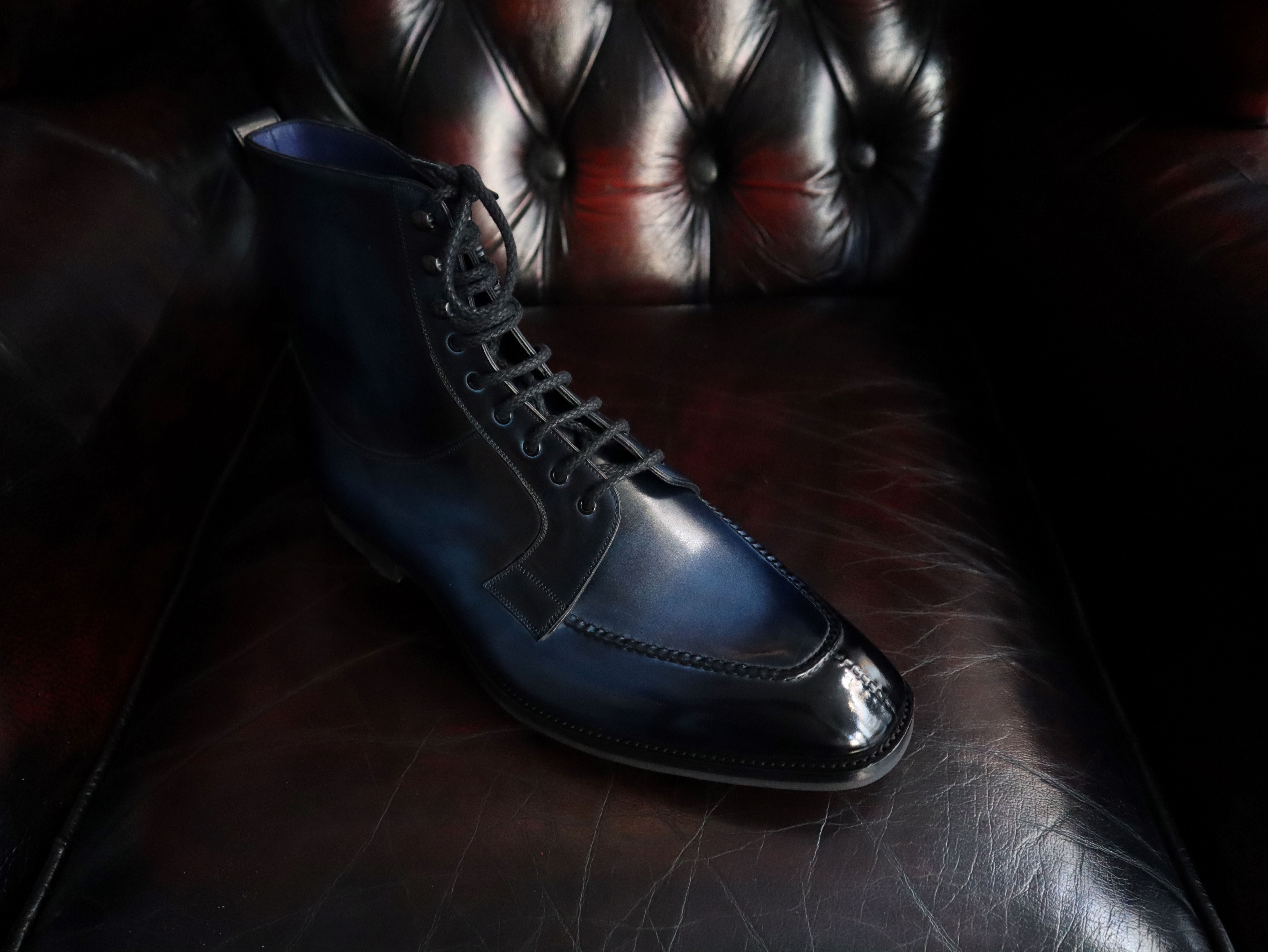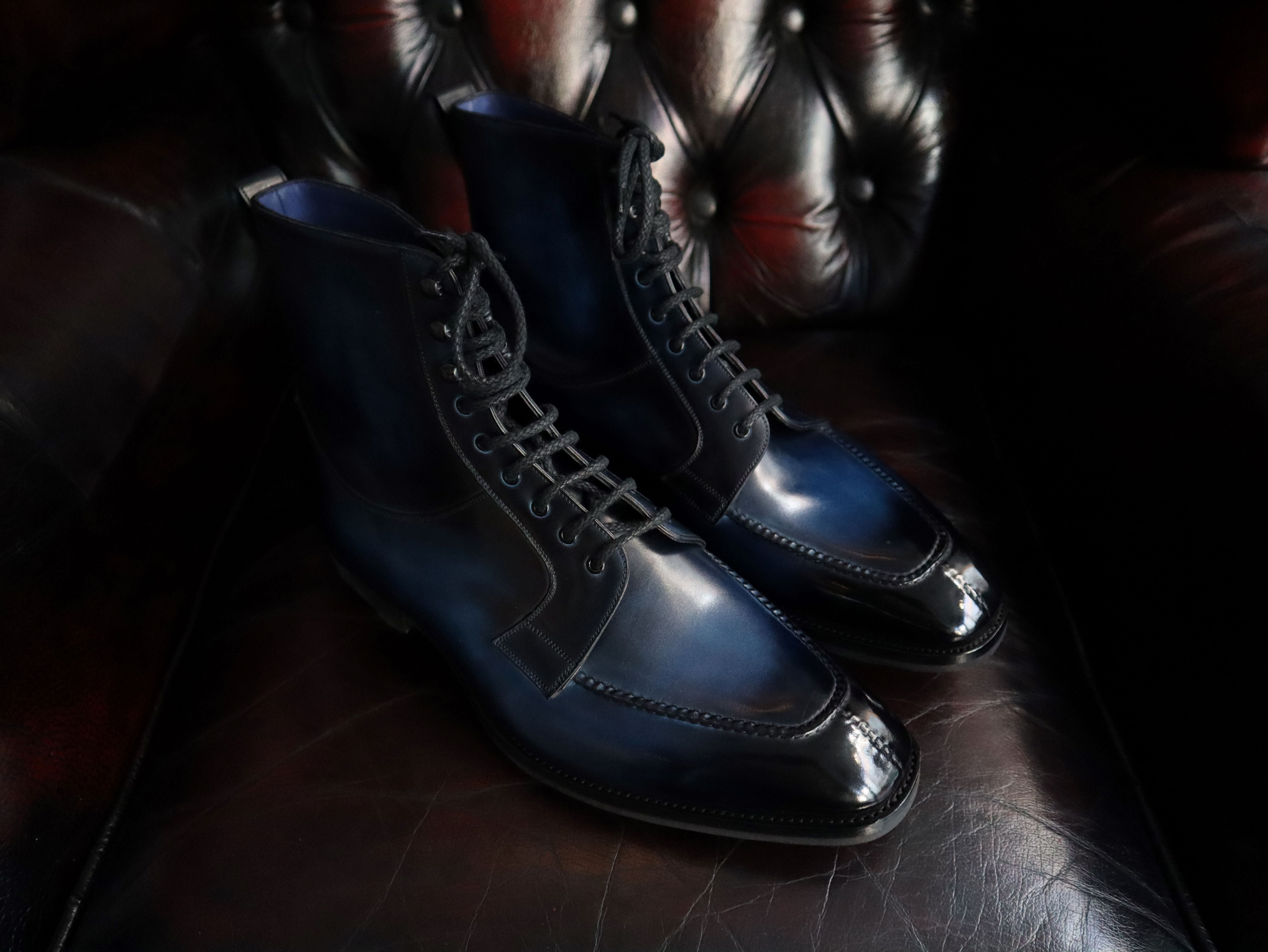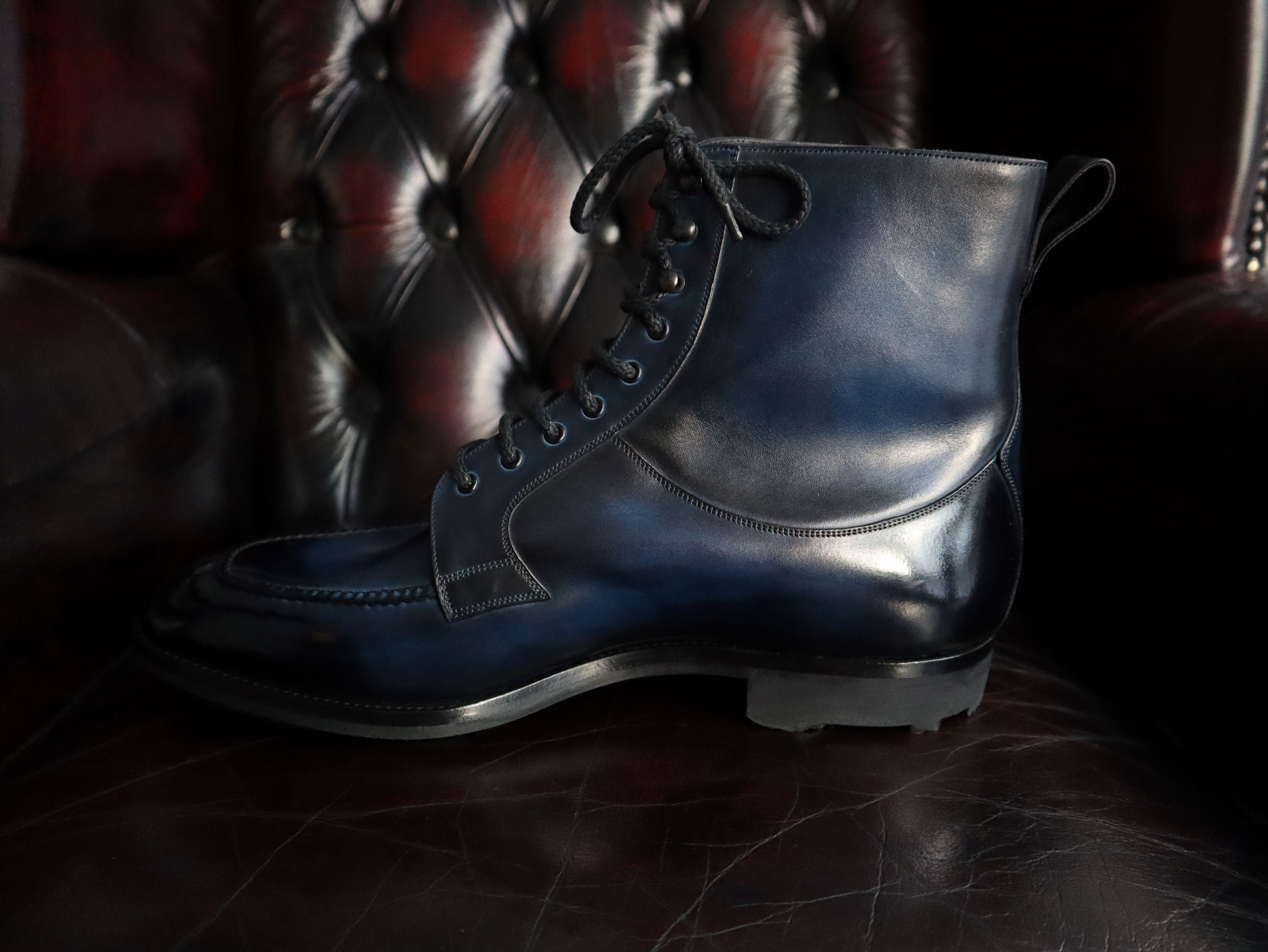 Here it is in Sapphire Patina on the MH71 toe shape with a Ridgeway rubber sole. (Please note the Ridgeway rubber sole is not currently available, you will receive these with a Black Gumlite Rubber Sole)