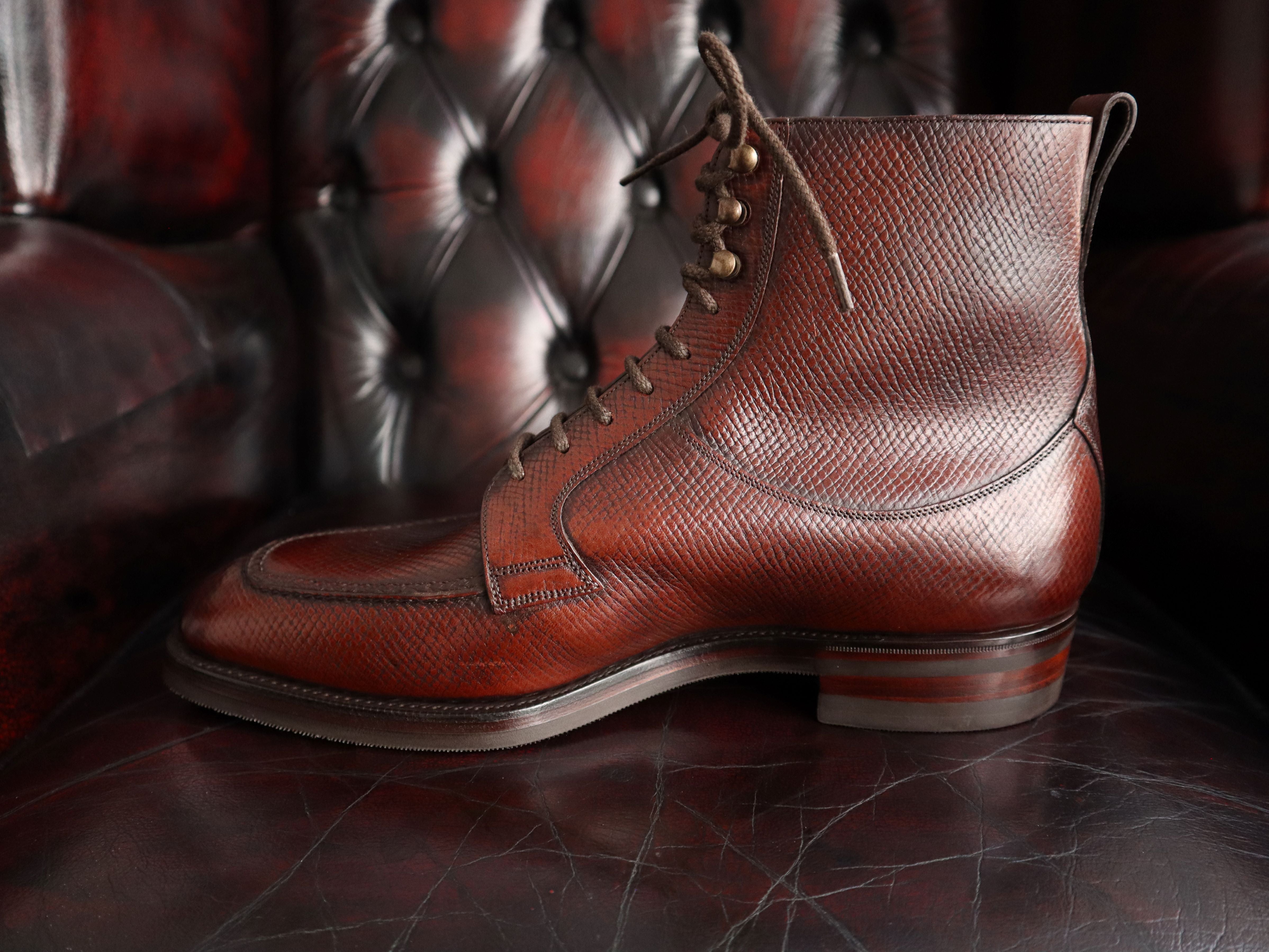 The iconic Thorpe, handcrafted from beautiful Oak Hatch Grain, with a double wensum rubber sole on our Soft Square MH71 last.