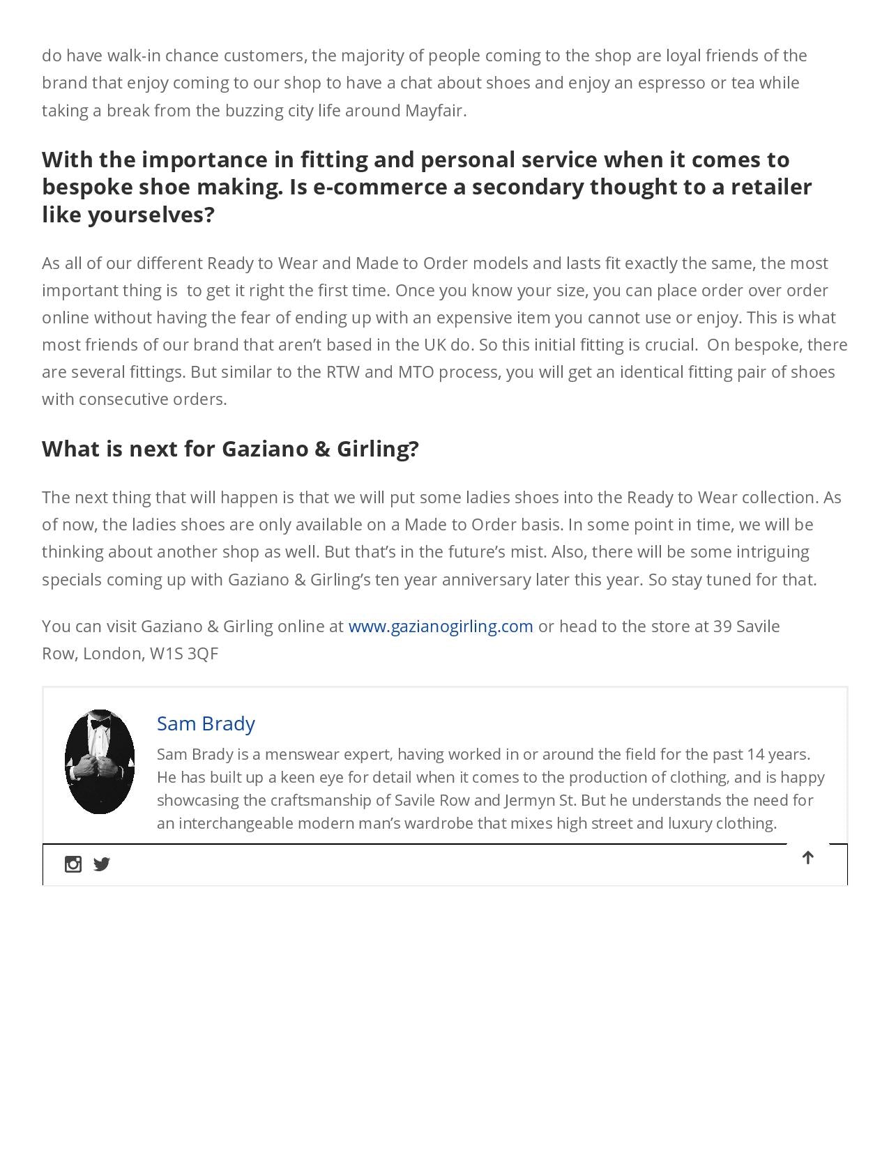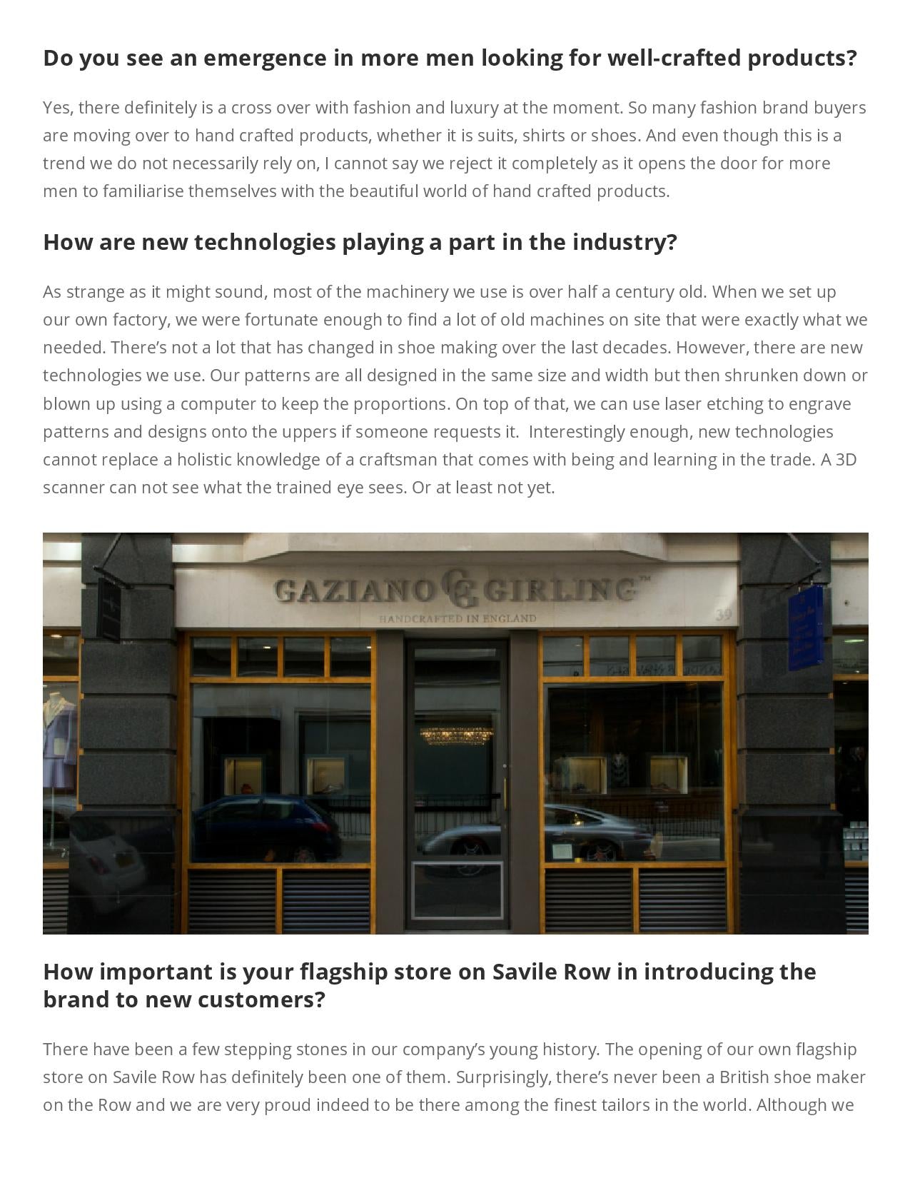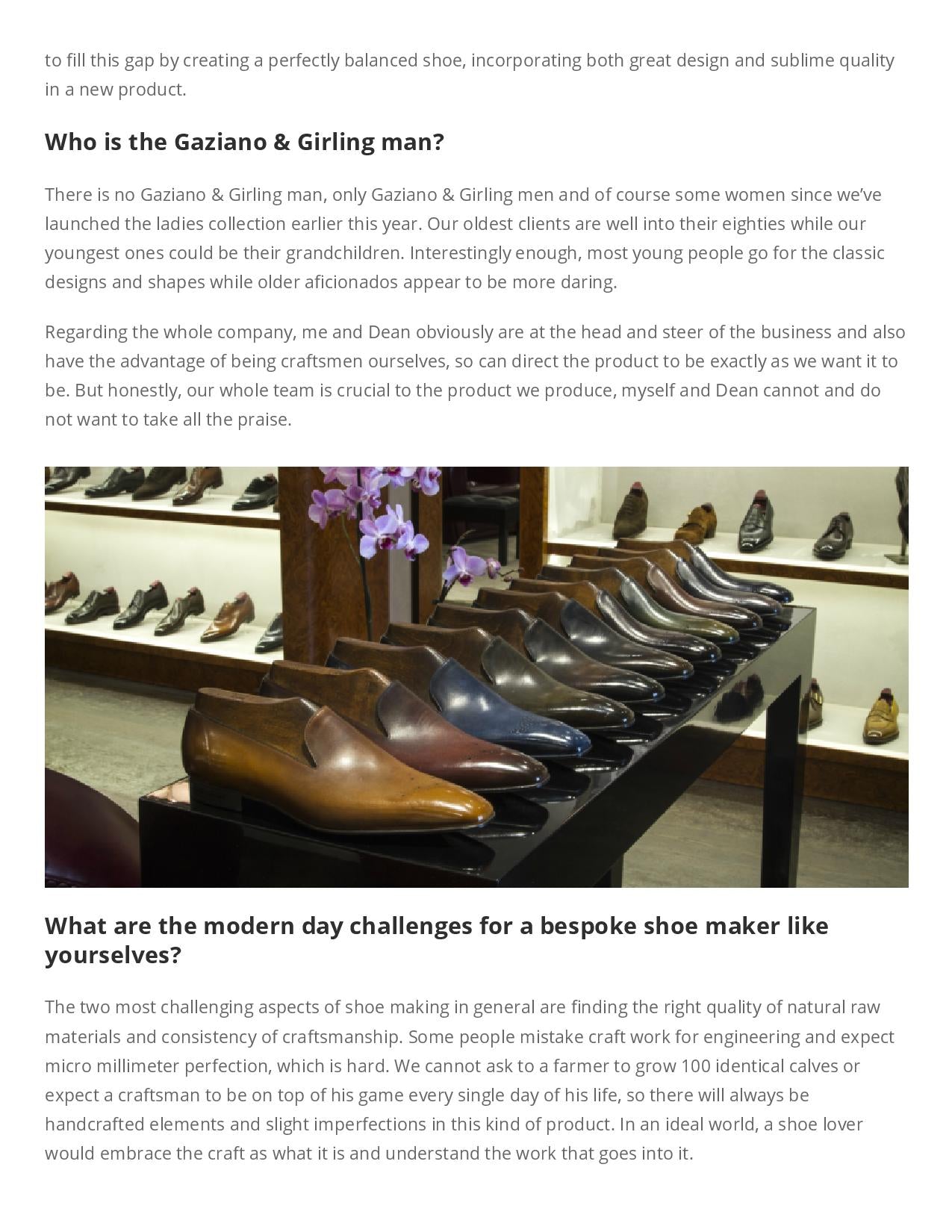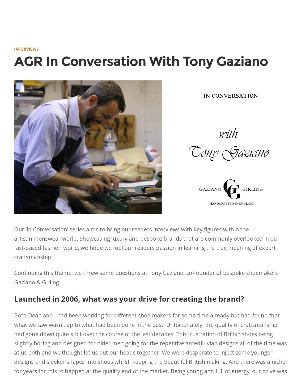 An interview with Tony Gaziano by Sam Brady from “A Gentleman’s Row” about the company as well as shoe making in general. Please click onto the title to view the full interview. “A Gentleman’s Row gives men the knowledge to act, dress, groom and live your life like a gentleman. From Savile Row to front row, we have men covered when it comes to timeless, luxury style. Develop your gentleman credentials through expert articles on fashion, grooming and etiquette.”