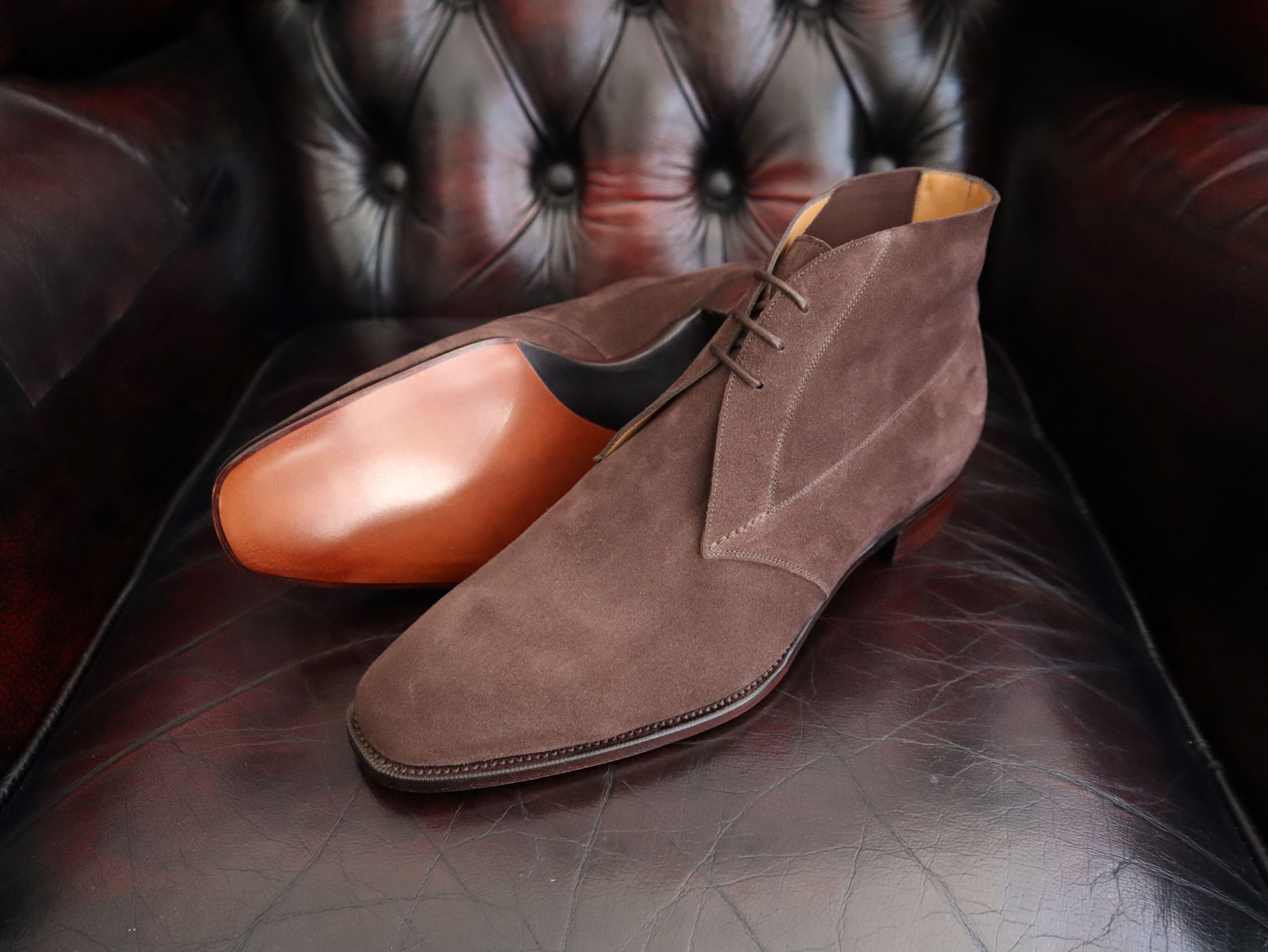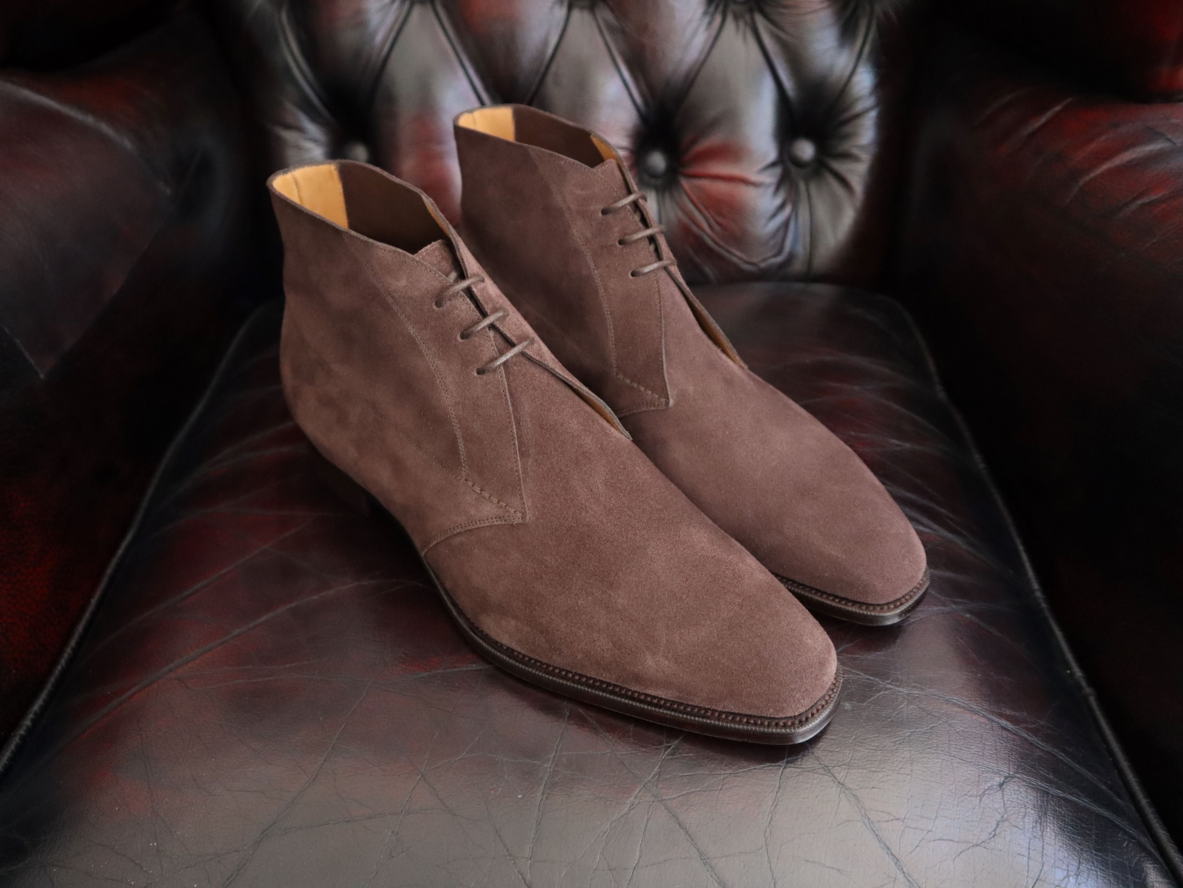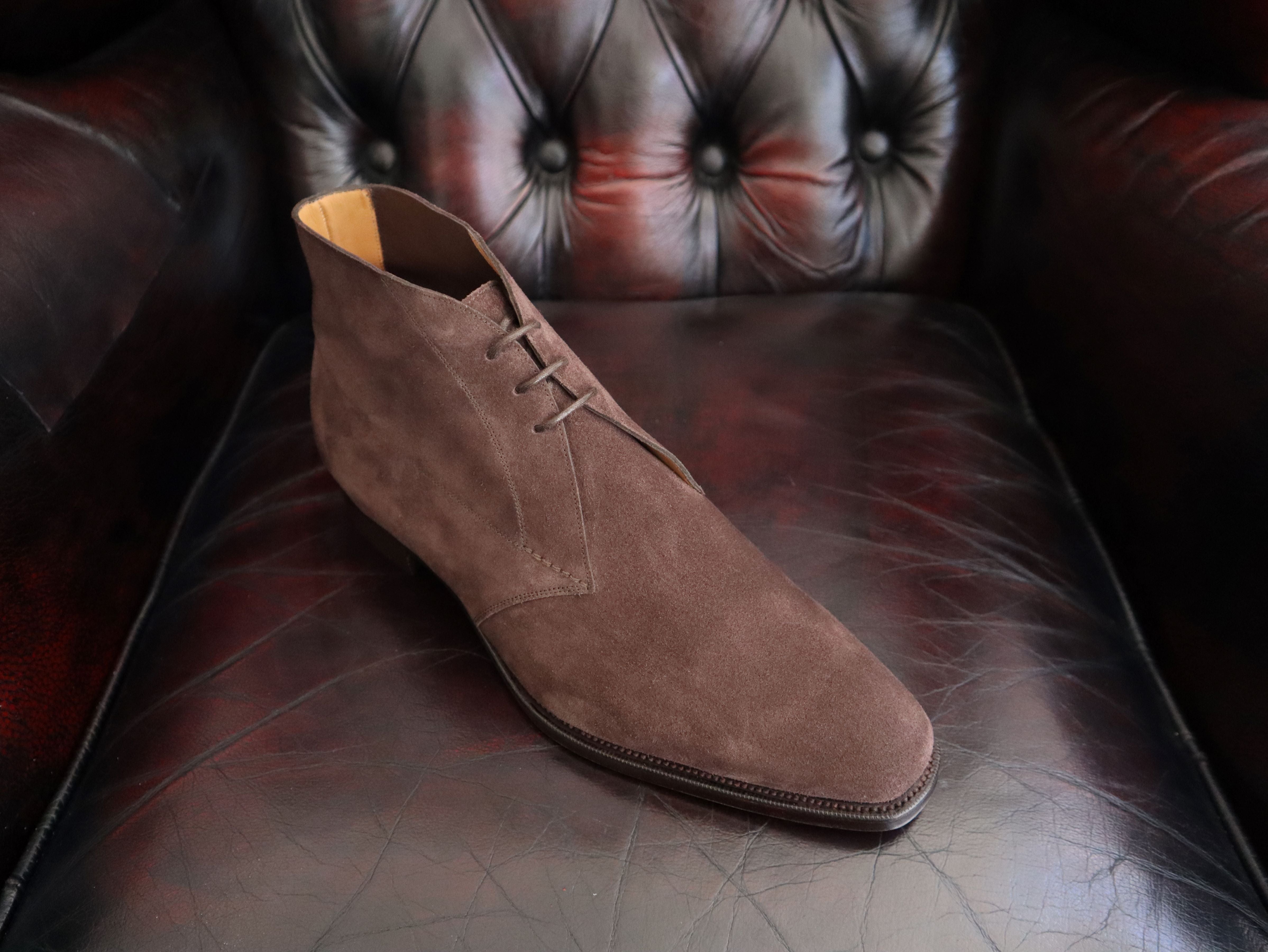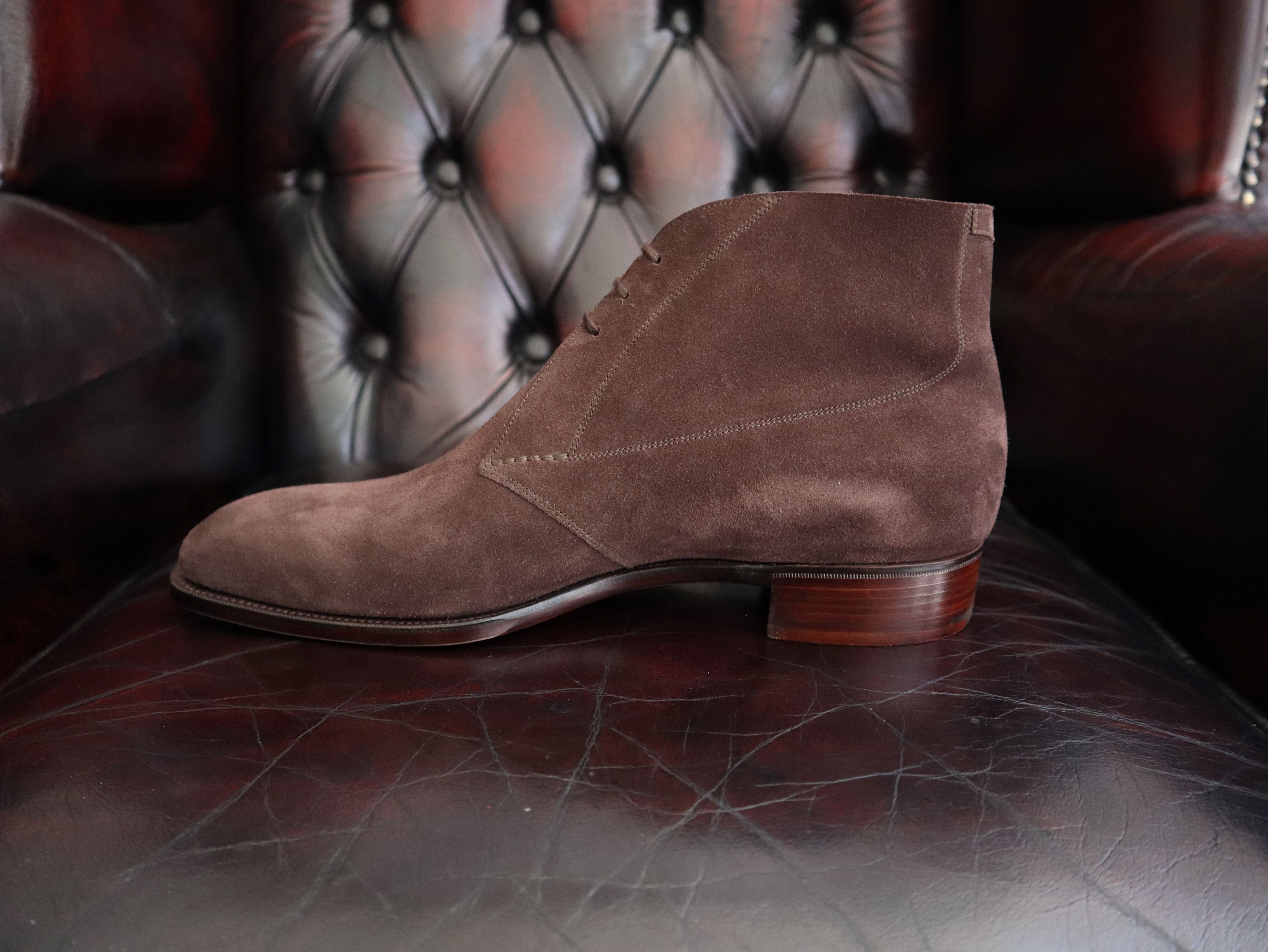 Our “In-Stock” Chukka boots are made to an “E” fitting which is our Medium width fitting and can now be made in “D” (Narrow), “F” (Wide) and “G” (Extra Wide) fittings if required by using the drop-down options.