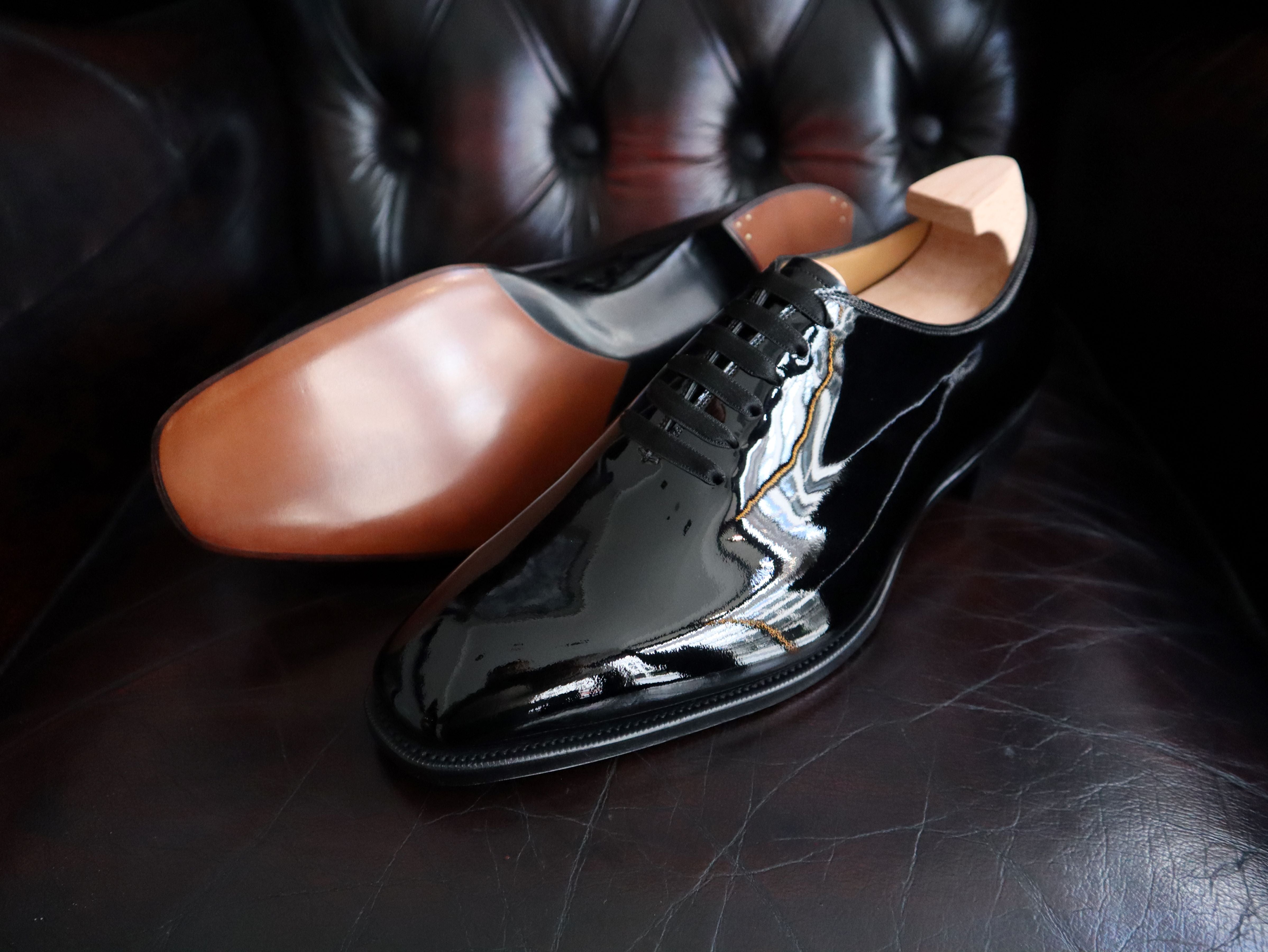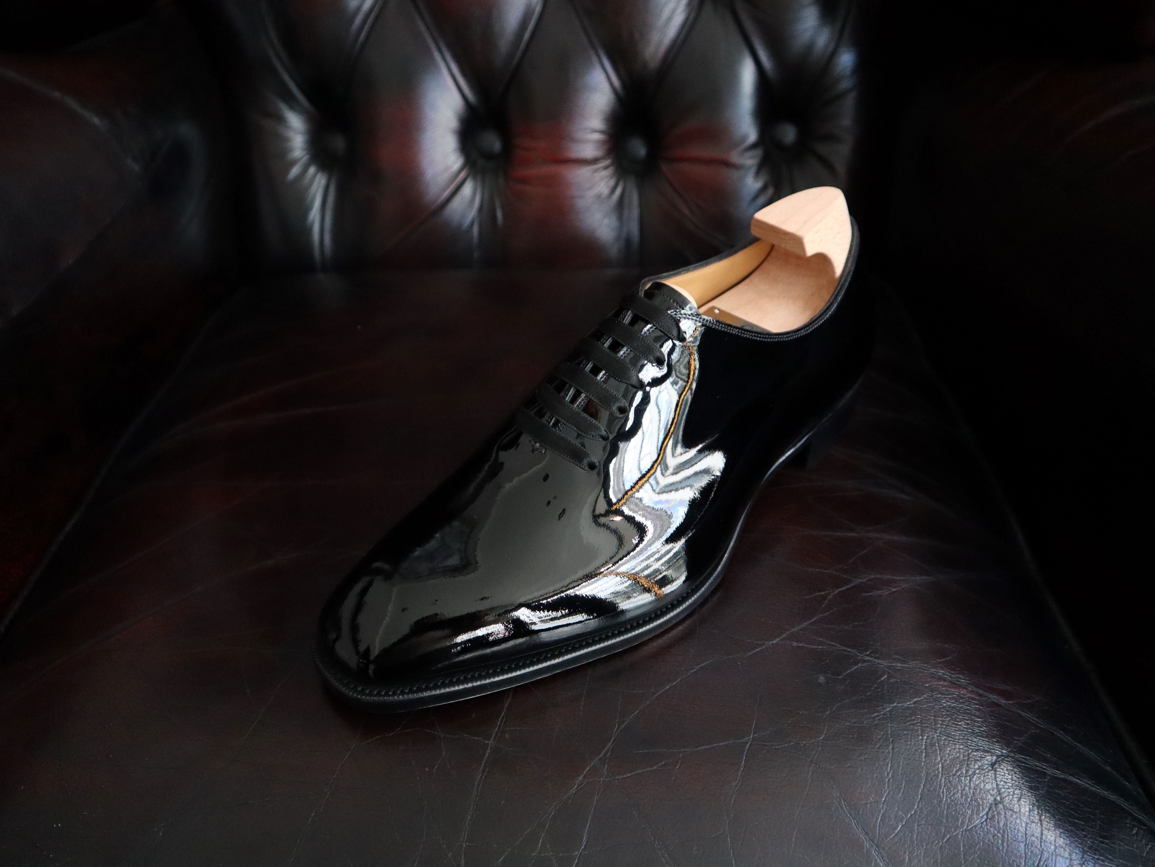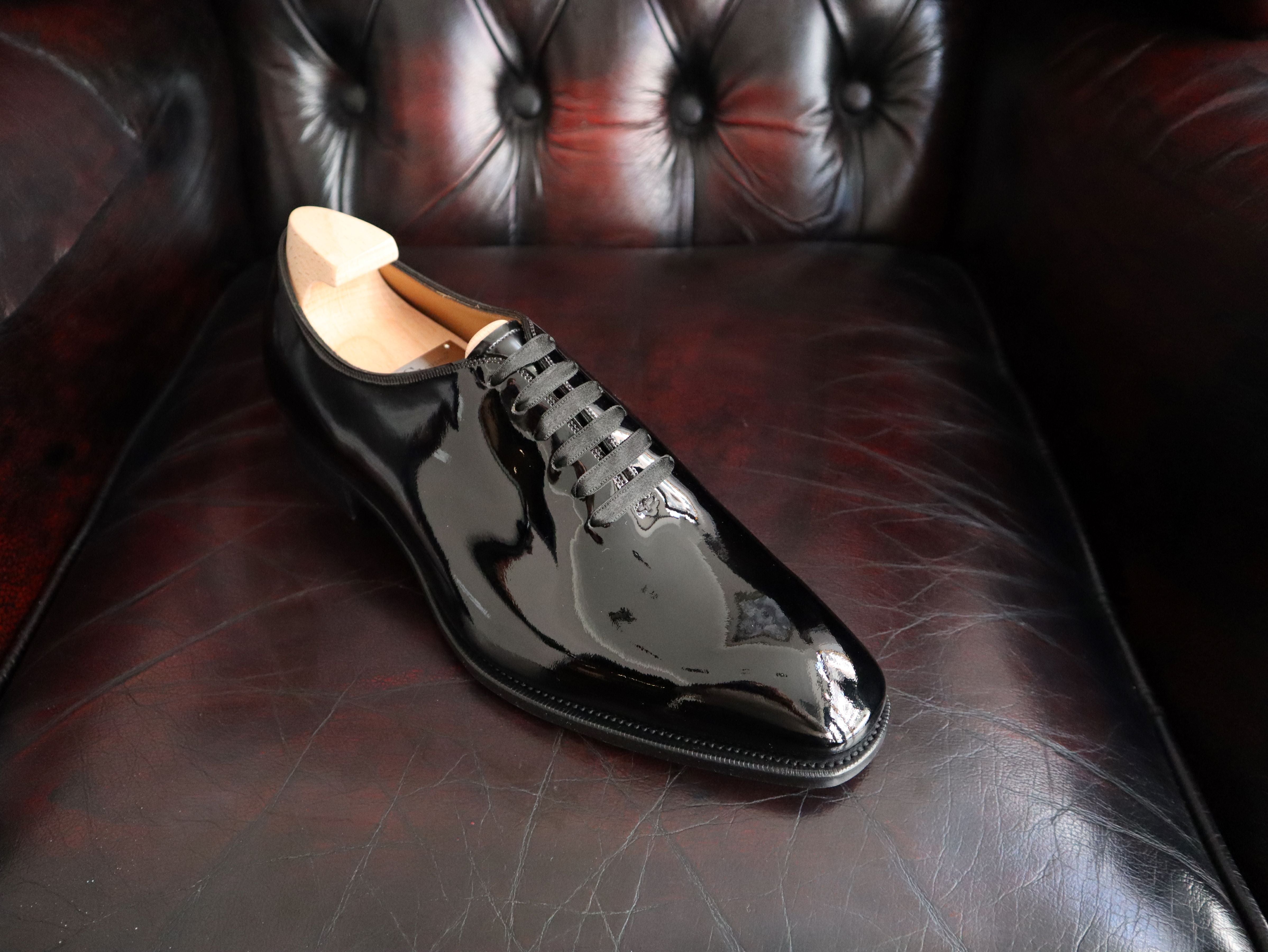 Hand crafted from beautiful Black Patent Leather on our KN14 last.