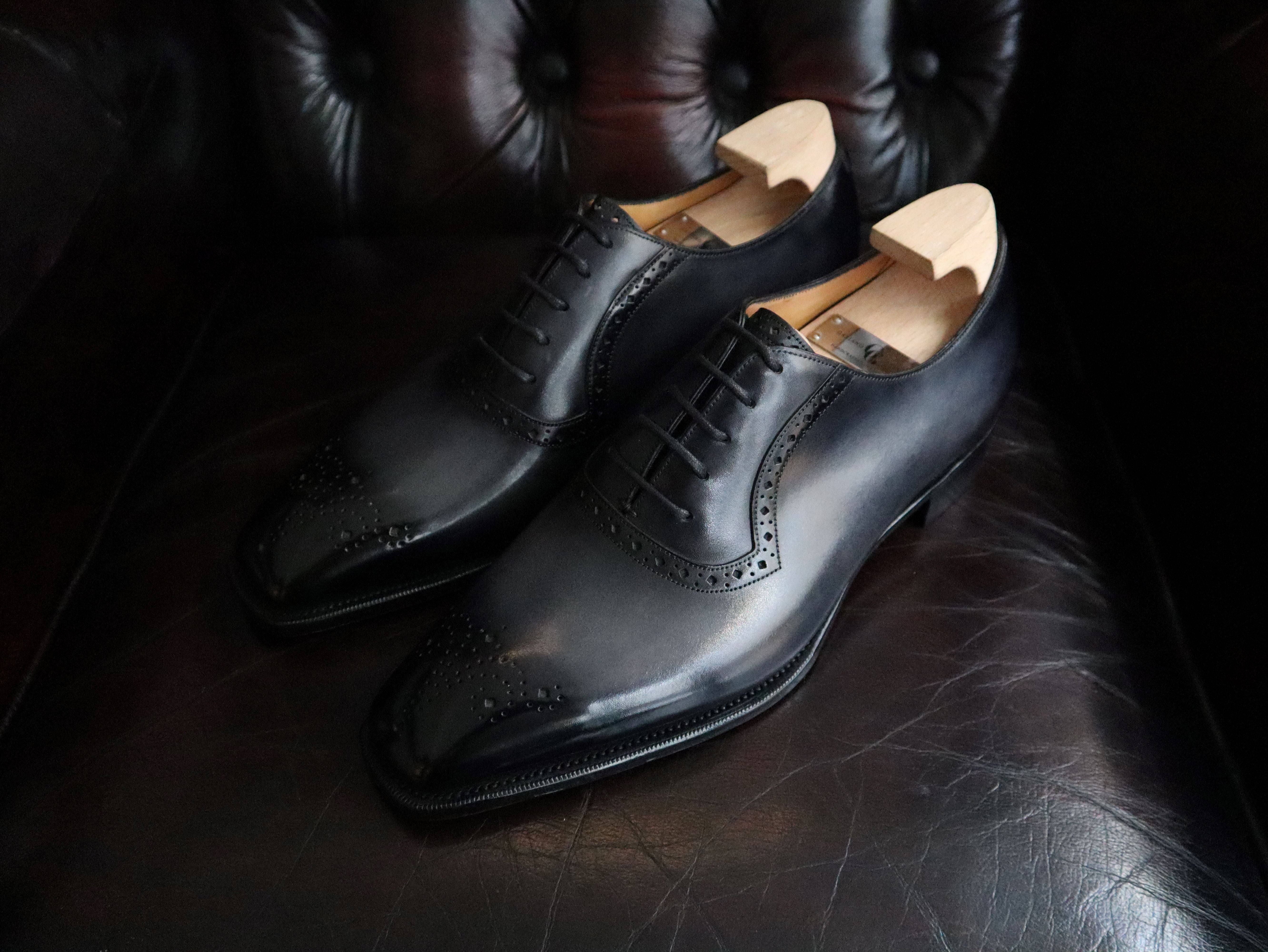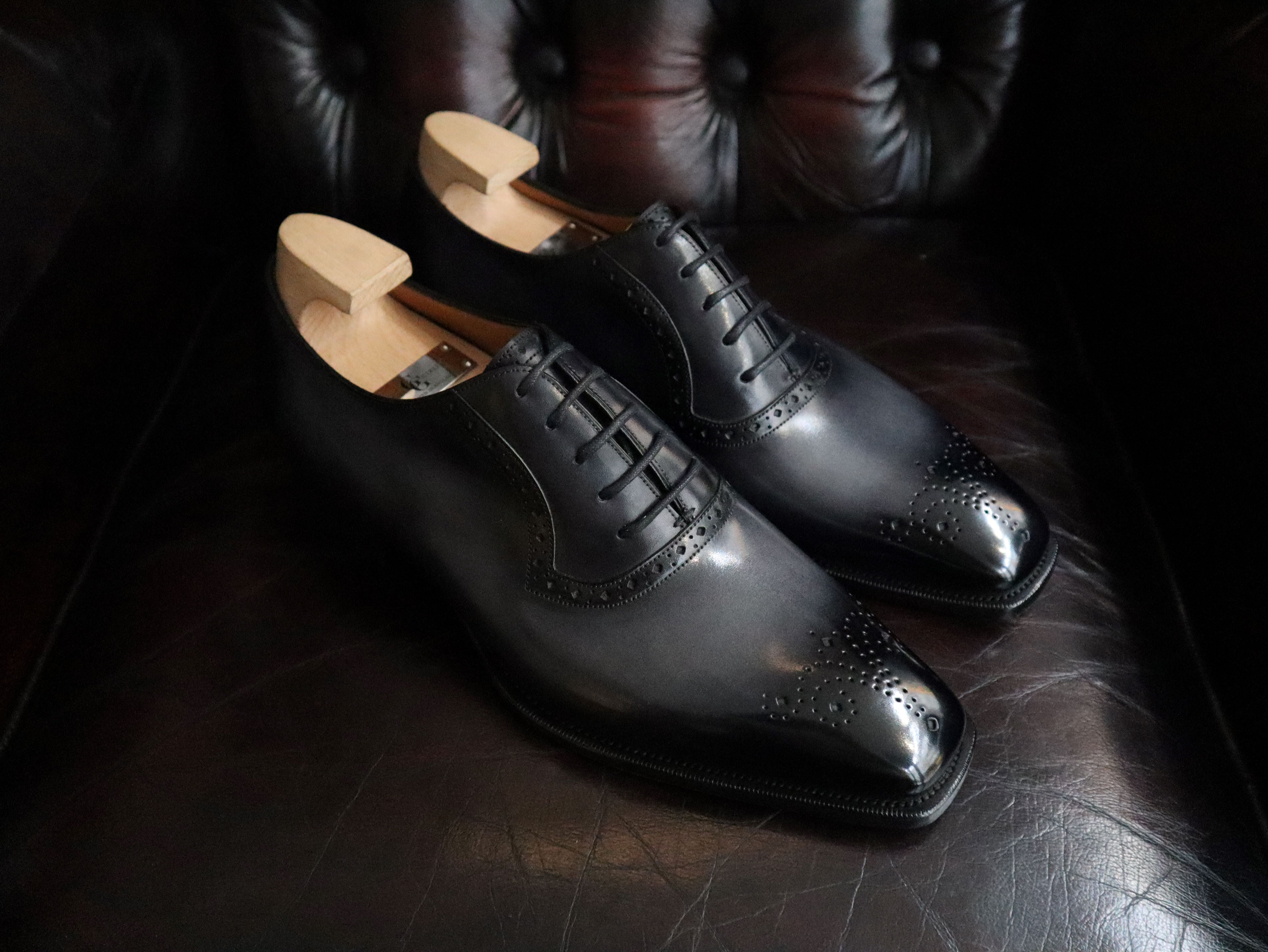 Here it is in Edwardian Grey on the TG73 last with a single leather sole.