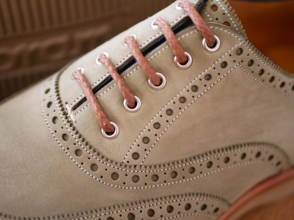 Brookland works the same as our regular Made-to-order service, you choose your style, leather, lining and last shape – in addition only with the Brooklands you will be able to choose the colour of sole, lace colour, welt colour and colour of upper stitching, so you can really personalise and create something special. We have also introduced a small range of Nubuck leathers to accompany the Brooklands that have a super casual look.