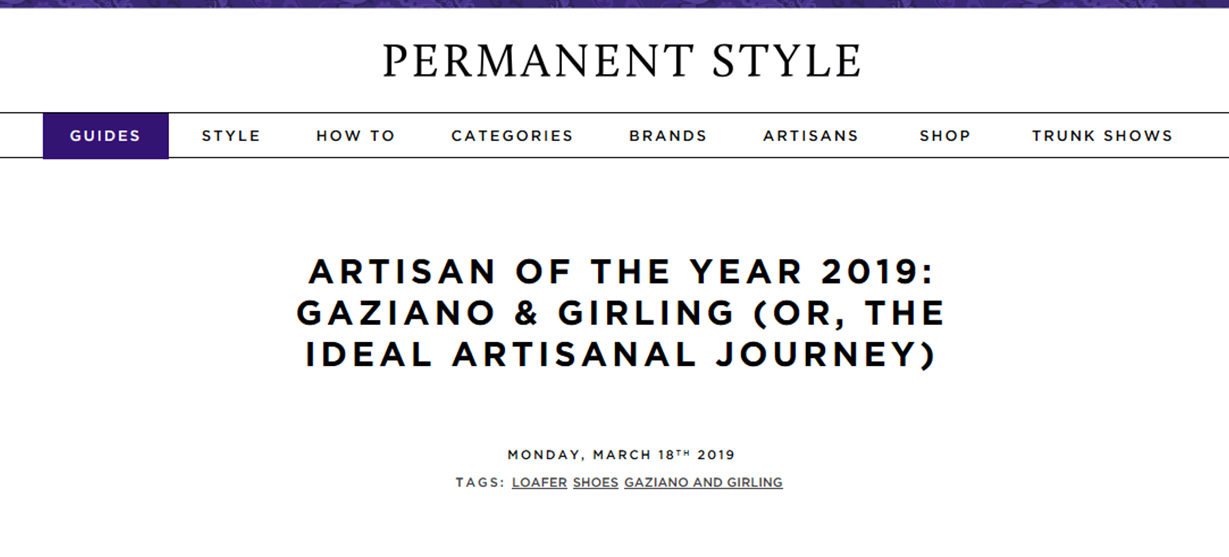 Artisan of the Year on Permanent Style Awards 2019 Thank you very much to Simon Crompton, founder of Permanent Style […]
